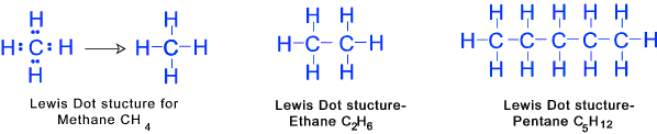 The structure of carbon and its compound can be expressed using the Lewis-dot structure This system identifies how the atoms that compose a molecule of a specific compound are attached (bonded) to one another and (to some extent) oriented in space. An atom is indicated by its symbol with a number of dots representing the number of valency electrons e.g Hydrogen would be H with a single dot, Carbon would be a C with four dots. When two valency electrons are paired they are represented by two adjacent dots. Paired valency electrons are not normally available for forming bonds with other atoms.