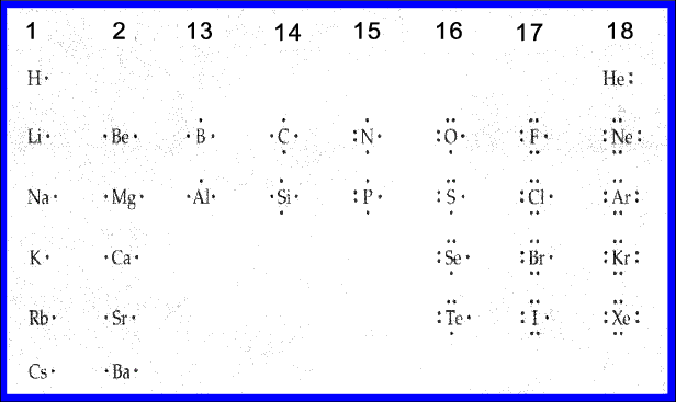 Group 13 Beginning with Boron would have three dots all separated, unpaired, and considered bonding electrons.