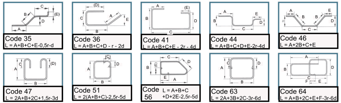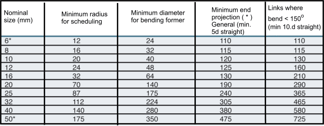 Details based on BS 8666 .Normally grade H bars used f y = 500 N/m2