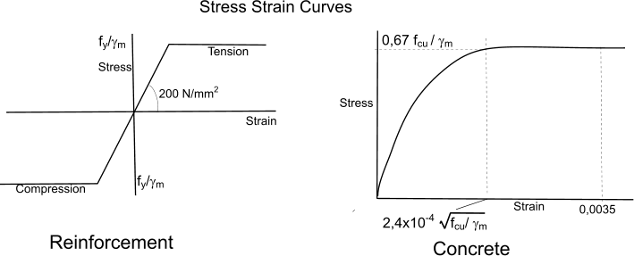 2) The compressive stresses in concrete are derived from stress strain curve shown below with γ m = 1,5