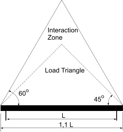 2) Any point load or distributed load applied within the load triangle is dispersed at 45o and carried by the linter