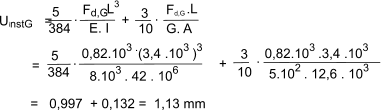It is clear from Deflections Note simple equation used in this section are obtained from the following pages Instantaneous deflection due to permanent actions uinstG Fd,G = total load x joint spacing x span length = 0,4 x 0,6 x 3,4 = 0,82 kN The instantaneos deflection due to permanent actions uinstG results from uinstG = bending deflection + shear deflection.