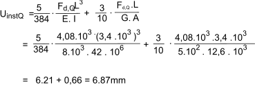 The instantaneous deflection due to variable actions uinstQ results from Fd,Q = total load x joint spacing x span length = 2,0 x 0,6 x 3,4 = 4,08 kN