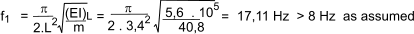 Check impulse velocity Floor width, b = 3.4 m and floor span, l = 3.6 m. Iy = 42 . 106 mm4 = 42 . 10-6 m4 Mass due to permanent actions per unit area, m, is m = permanent action / gravitational constant The fundamental frequency of vibration, f1, is