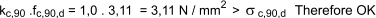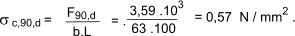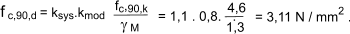 The design bearing strength The design compressive strength perpendiculr to the grain fc,90,d is calculated as