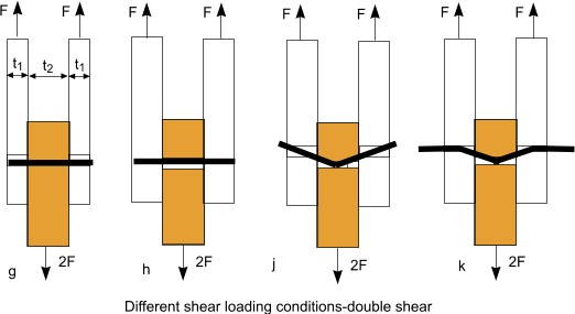 t1 = least of head side thickness and point side, t2 = central member thickness (in double shear..)