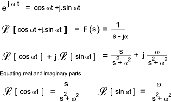 From above the transform for cos ωt and sin ωt is obtained by setting a = jω