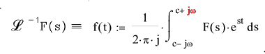 The contour integral which defines the inverse Laplace Transform is shown below... for reference only, for in practice, this integral is seldom used as table lookup are generally all the operations required for the inverse transform procedure..