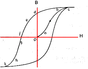 Initially the ferromagnetic material is unmagnetised at 0 then, as H increases, the flux (B) follows the path a-b-c. At c the material is effectively saturated. Now if H is reduced to zero degree of magetism moves along the curve to d. Although the magnetising force has reduced to zero the ferromagnetic material has retained a most of its magnetism. Analogy between Magnetic and Electrical Circuits
