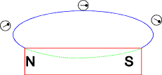 When a conductor is formed into a solenoid the resulting magnetic field formed is as shown in the figure below. The relationship between the current flow around a solenoid and the magnetic field is identified using the right hand rule.."If the right hand grips the outside of a coil with the fingers in the direction of the current flow the thumb points in the direction of the magnetic field in the centre of the solenoid."