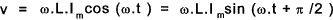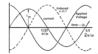 The amplitude of the induced e.m.f = ω.L.Im and the resulting e.m.f sine wave effectively lags the current by ω /2 . The sine waves are shown below