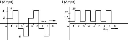 Assuming the current is delivering energy by heating a 4 ohm resistor. The total energy delivered over a complete cycle = Energy = Σ i 2 R.t = [22.1 + 52.1 + -22.1 + -52.1].4 =58.4 =232 Joules The equivalent direct current to produce the same heating effect over a complete cycle = I. I 2 R.t= =232 Joules Therefore I = Sqrt (232 / R.t) = Sqrt [ 232 /( 4.4)] = 3.807 Amperes Note: The average full wave rectified value = (2.1+5*1)*2/4 = 3.5 Amperes I = 0,707.Im