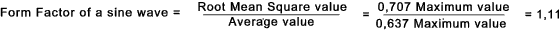 The form factor for a sin wave is defined as the R.M.S value /Average value