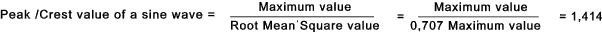 The peak or crest value of a sine wave is defined as the maximum value /the R.M.S value