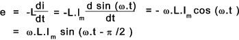 Consider a sine wave current through an inductance of L henries represented by the equation.. i = Im sin ωt. (t being the time in second after the current has passed through zero from negative to positive.) The instantaneous value of the induced e.m.f resulting from this changing current =