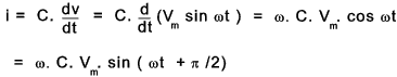 It is clear that the current leads the voltage by π /2 and the maximum value = ωC Vm