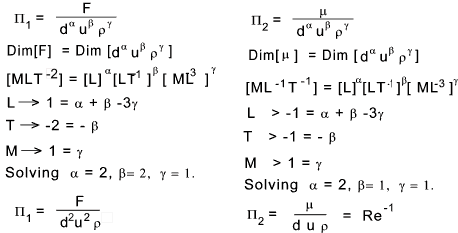 e.g. F->[MLT-2] , d->[L] , u-> [LT-1] , ρ ->; [ML-3] , μ ->[ML-1 T-1]