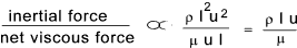 The ratio of inertia forces to viscous forces is therefore as follows: