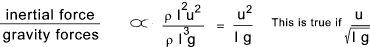 When considering forces with free surfaces e.g. flows over weirs, channel flows, or surface motion around ships, the most significant relationships is the ratio between the gravity forces and the inertia forces. These are summerised below..