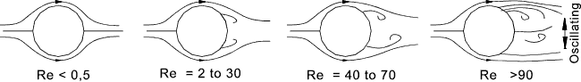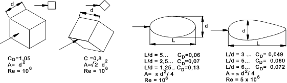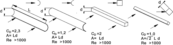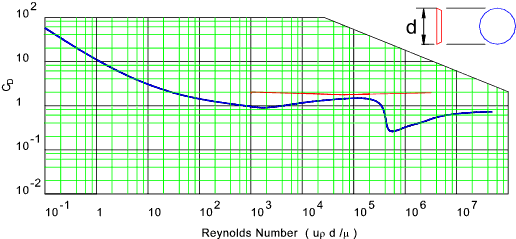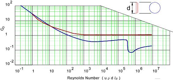 At low reynolds numbers (Re < 0,5)the inertial forces are negligible compared to the viscous forces and the streamlines come together behind the cylinder. The drag is therefore roughly proportional to u n. Drag is inversely proportional to C D. Drag for Infinitely long PLATE and infinitely long CYLINDER Drag calculated is better calculated using the variation of the drag equation