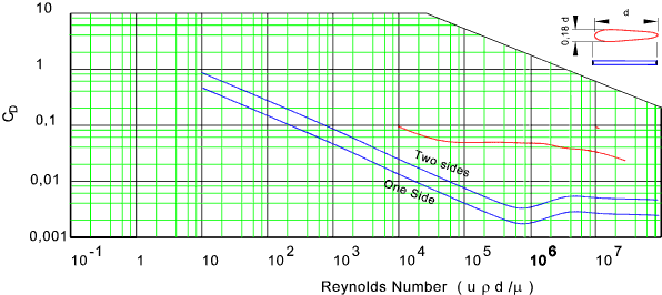 The drag coefficient is mainly friction drag (C f ). The area is the length x width (l.d )