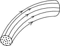 Patterns of Flow When considering the flow of a fluid it is often convenient to consider the flow as a number of imaginary curves along which individual particles of fluid flow. These lines are called streamlines or flowlines. fluid particles only flow along the streamlines and no particles cross the lines. A number of streamlines bundled together is termed a streamtube. he boundary of a streamtube is composed of streamlines and by definition of a streamline fluid can only enter and leave a streamtube at its ends.