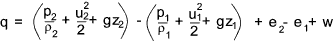 The off line flowstreams generally divert round the object as shown but the centre flow stream is such that at the surface of the object the velocity in the direction of the flowsteam = zero. This is called a stagnation point. Flow of real fluids..... reference First Law Of Thermodynamics Steady Flow Bernoulli's equation is fundamental to fluid flow analysis but it is subject to certain important simplifications. It assumes the fluid is inviscid and incompressible and that the flows are steady and relationships have been derived using newtons laws based on flows alone a single streamline. When considering the flow of real fluids it is necessary to include for energy losses and energy gains. The first law of thermodynamics is reviewed in outline on webpage Laws of Thermodynamics and basically identifies the transfer of energy over a complete cycle for a system as follows Δ Q = ΔE + ΔW Δ Q is the increase of energy supplied to a system, Δ E is the increase in the total energy of a system and Δ W is the mechanical work done by the system. In fluids the processes are flow processes and the first law is expressed in the form of the "steady flow energy equation as shown below..