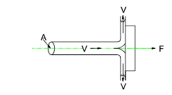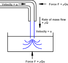 In its simplest form, with steady flow conditions, the force on a fluid flow in a set direction is equal to its mass flow rate times by the change in velocity in the set direction. The fluid flow also exerts an equal and opposite reaction force as a result of this change in momentum. F = Qρ (u 1 - u 2). ..( F and u are vector quantities) The resultant force on a fluid in a particular direction is equal to the rate of increase of momentum in that direction. Jet Forces on Stationary Plates Jet force on a flat plate