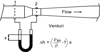 Introduction The notes on this page related to the methods of measuring flow using devices which are based on bernoulli's equation. There are many other devices which are convenient to use and are very accurate which are based on other principles including vortex shedding, ultrasonics (doppler), turbines, and variable orifice. To obtain information on these devices please consult the linked sites at the bottom of this page. Symbols