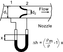 Design and performance parameters of nozzles flow meters are provided in BS EN ISO 5167-3:2003 Orifice Flow Meter The simplest and cheapest method of measuring the flow using the bernoulli equation is the sharp edged orifice as shown below.
