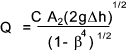 Now letting β = d 2 / d 1 that is β 2 = A 2 / A 1. The equation for flow through an orifice becomes