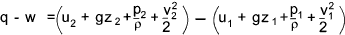 If q = w = 0 and the fluid is incompressible and frictionless and if the variables are converted to measured heads of the fluid , that is the units are per unit weight (ρg) - then the Bernoulli's equation results ..
