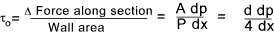 The fluid shear stress (τ o ) at the boundary wall is related to the pressure differential along the pipe by the expression.