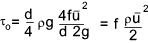 Showing relationship between τo and f Darcy conducted experiments and proved that for pipes of uniform cross section and roughness and fully developed flow the head loss due to friction (hf ) along a pipe is in accordance with the following formula.
