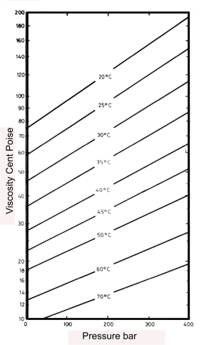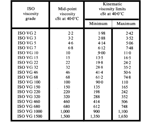 The reference temperature of 40 °C relates to the hydraulic system operating temperature. Each Viscosity grade (VG) within the classification has approximately a 50% higher viscosity than the preceding one. The the minimum and maximum values of each grade ranges ±10% from the identified mid point. For example, ISO VG 32 refers to a viscosity grade of 32 cSt ± 10% at 40°C. The viscosity at another temperatures can be calculated using the viscosity at 40°C and the viscosity index (VI), which represents the temperature dependency of the lubricant. The higher the VI the less the viscosity changes with termperature. Special oils with VI of 125 to 150 have been developed with a very low dependency of the viscosity on the temperature.