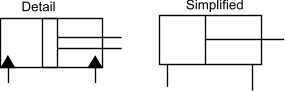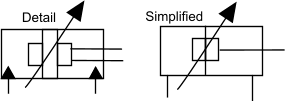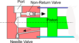 Cylinder cushioning End caps have to withstand shock loads at the extreme ends of piston travel. These loads arise not only from fluid pressure, but also from the kinetic energy of the moving parts of the cylinder and load. These shock loads can be reduced with cushioning systems built in the end caps. The principle of operation of the cushioning is shown in the sketch below. When the Piston aproaches the end of its stroke the flow to the output port is restricted by a projection on the piston entering the discharge route. The flow is then through small hole and via a needle valve which provides control of the cushioning effect. To allow smoothe full force movement of the piston away from the end cap a non-return valve is included.