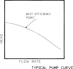 A pump is generally selected for a duty such that when the pump curve is superimposed on the system characteristic curve the curves cross over at the pump best efficiency point (BEP) at the desired flow rate.