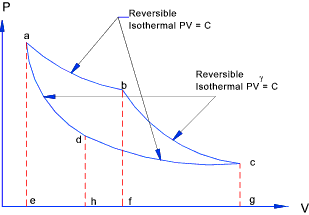 Introduction Various internal combustion engine types have been devised and represented by various idealised cycles (otto cycle for four stroke, diesel cycle etc.. These idealised cycles are useful for determining the practical limitations and efficiencies possible. They do not however provide the answer to the question.. Carnot Cycle Carnot in 1824 arrived at the "carnot cycle" which is an idealised gas cycle that obtains the maximum amount of work from an engine working in a thermodynamically reversible manner. This cycle provides a maximum efficiency for any thermodynamic heat engine