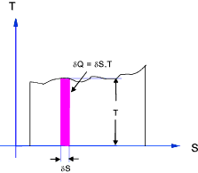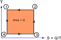 At the very simplest level , on a plot of Absolute Temperature (T) against Entropy (Q/T = S) for a reversible cyclic process (as shown below) the area enclosed = Q
