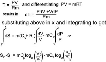For a perfect gas PV = mRT and assuming Cv is constant.