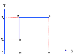 Note: The reversible cyclic process shown below is actually the theoretical Carnot cycle.