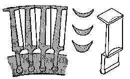 There are two principles used for design of turbine blades the impulse blading and the reaction blading. The impulse blading principle is that the steam is directed at the blades and the impact of the steam on the blades drives them round. The day to day example of this principle is the pelton wheel.ref Turbines.