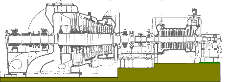 Introduction A steam turbine is a mechanical device that converts thermal energy in pressurised steam into useful mechanical work. The original steam engine which largely powered the industrial revolution in the UK was based on reciprocating pistons. This has now been almost totally replaced by the steam turbine because the steam turbine has a higher thermodynamic efficiency and a lower power-to-weight ratio and the steam turbine is ideal for the very large power configurations used in power stations. The steam turbine derives much of its better thermodynamic efficiency because of the use of multiple stages in the expansion of the steam. This results in a closer approach to the ideal reversible process. Steam Turbine Principle The steam energy is converted mechanical work by expansion through the turbine. Th expansion takes place through a series of fixed blades (nozzles) and moving blades each row of fixed blades and moving blades is called a stage. The moving blades rotate on the central turbine rotor and the fixed blades are concentrically arranged within the circular turbine casing which is substantially designed to withstand the steam pressure.