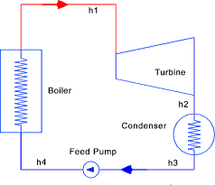 The various energy streams flowing in a simple steam turbine system as indicated in the diagram below. It is clear that the working fluid is in a closed circuit apart from the free surface of the hot well. Every time the working fluid flows at a uniform rate around the circuit it experiences a series of processes making up a thermodynamic cycle.