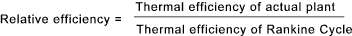 Although the theoretical best efficiency for any cycle is the Carnot Cycle the Rankine cycle provides a more practical ideal cycle for the comparision of steam power cycles ( and similar cycles ). The efficiencies of working steam plant are determined by use of the Rankine cycle by use of the relative efficiency or efficiency ratio as below: