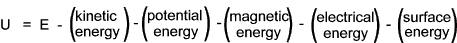 The stored energy of a body, substance or system which is independent of electricity, atomic, sound, magnetism, surface tension, motion and gravity is called the internal energy is given the symbol U.