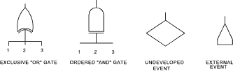 Symbols are used in fault tree analysis to represent events and the logical interface between the events. Most fault tree analyses can be carried out with just four symbols..