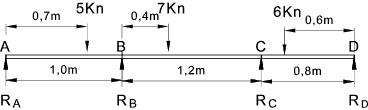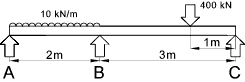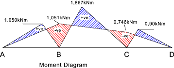 This simple example is a three span continuous beam with the ends simple supported,therefore with no moments at the end support points..