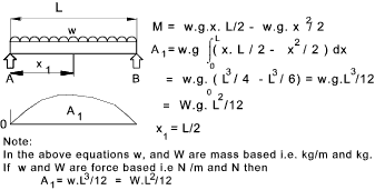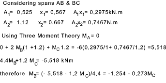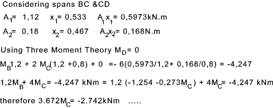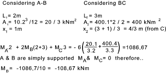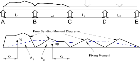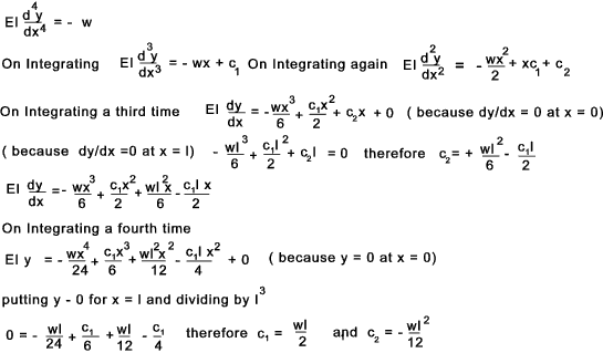 Using the above equations the bending moment, shear force, deflection, slope can be determined at any point along the beam. M = EI d 2y/dx 2 = w(- 6x2+6lx -l2)/12 at x = 0 & l then M = -wl2 /12 and at x = l/2 then M = wl2 /24 Continuous Beams This type of beam is normally considered using the Clapeyron's Theorem ( Three Moments theorem)