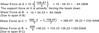 If the beams has a different section for each span then the more general expression applies as shown below.